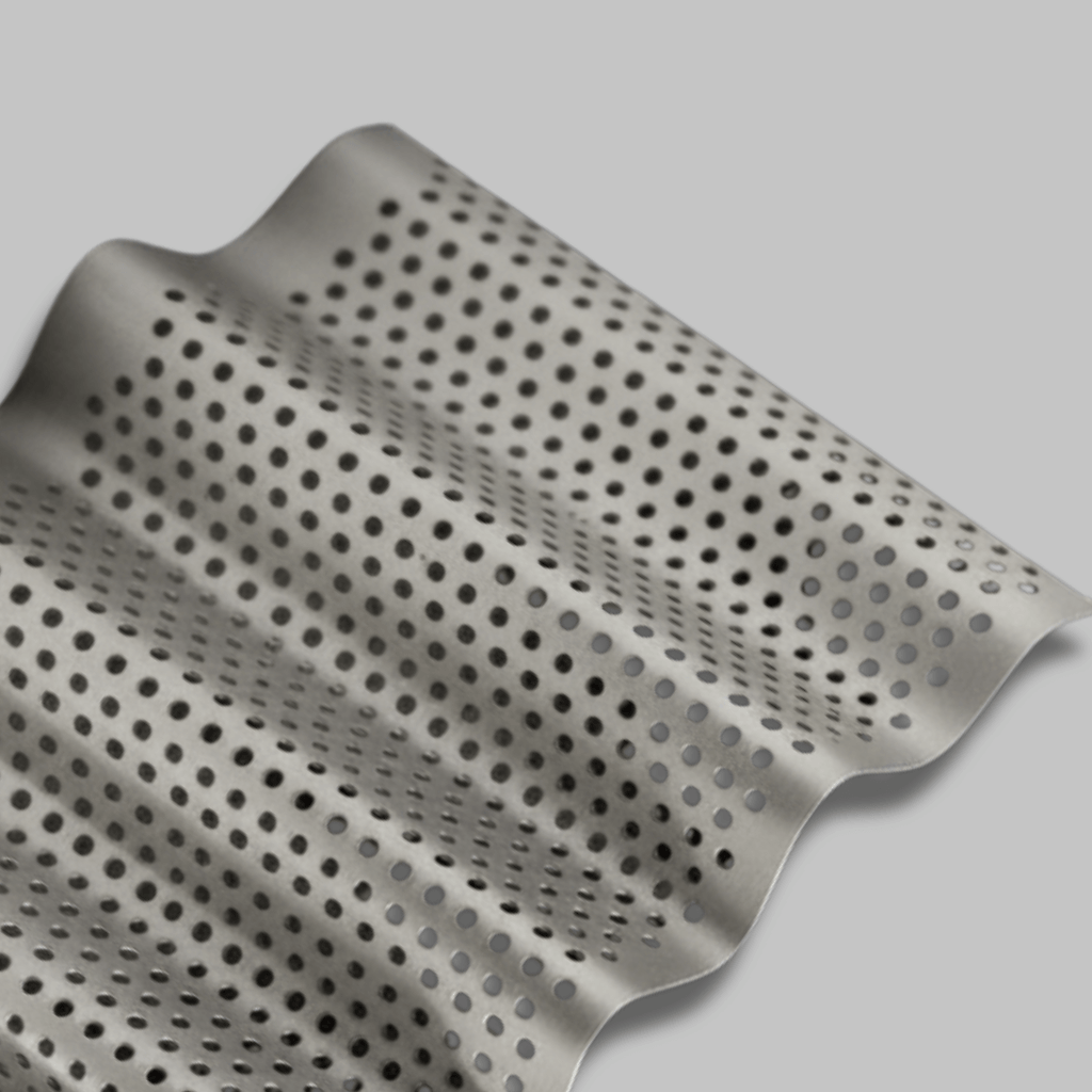 Perforated corrugated sheets combine the structural advantage of the corrugated profile with the open area properties of perforated metal — suitable for ventilated facade screens, acoustic cladding panels, and architectural applications where airflow or light filtration is required alongside structural form.